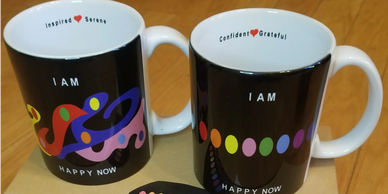 Superior quality ceramic 11 oz mugs that help you start each day with a happy mindset. Sip your way to be "Inspired and Serene" and "Confident and Grateful" with SET ONE or be "Brave and Passionate" and "Kind and Loving" with SET TWO. These affirmations will contribute to helping you be happy now!!